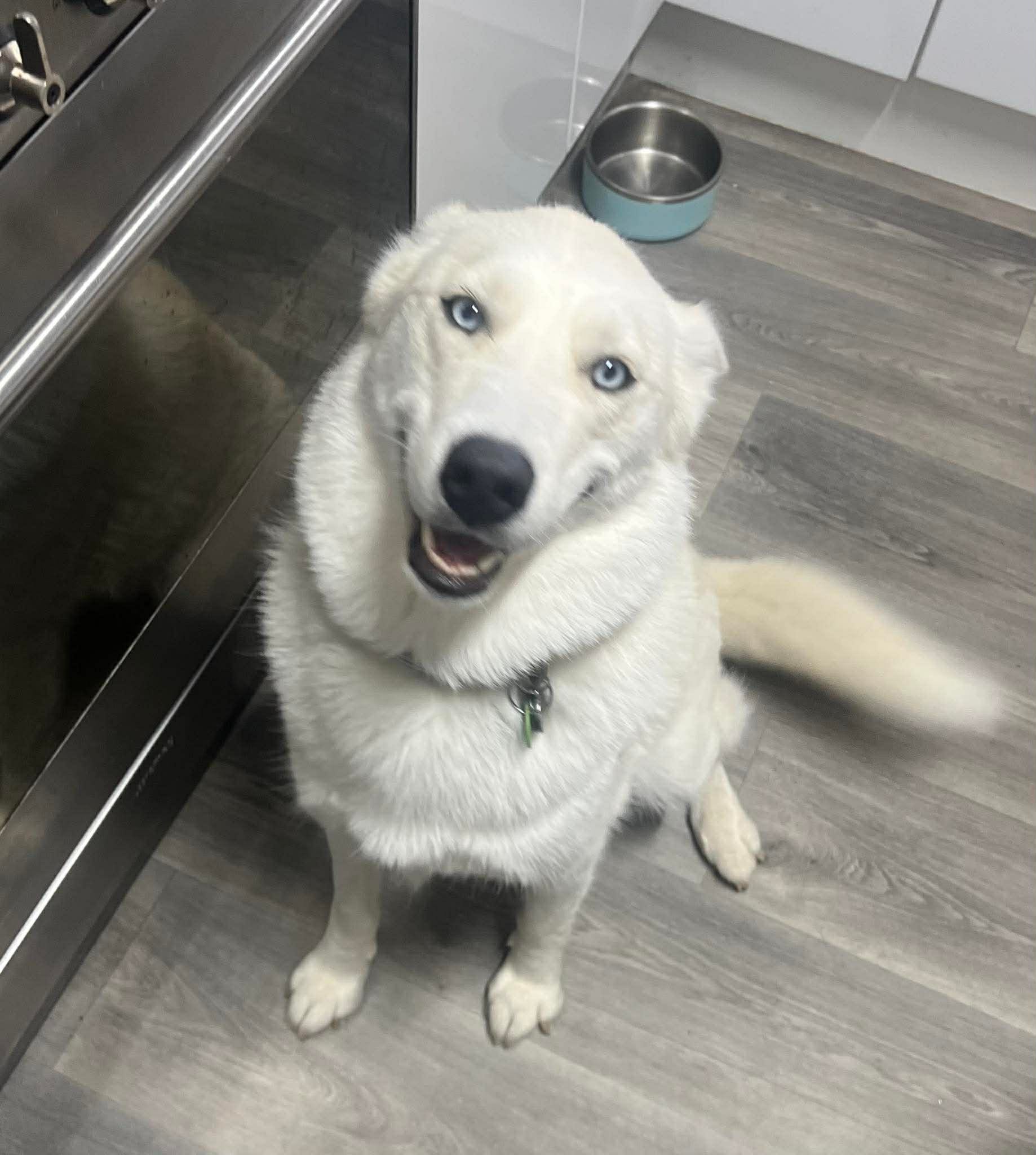 Angel loves her food, she is food driven. If you want her to come to you and she ignores you like a normal husky does the magic word is biscuit, either a treat or her favorite teddy bear plain biscuit. She eats cooked meats and raw with veggies but she does eat what you give her.